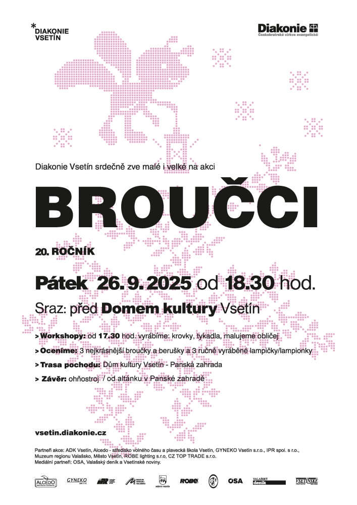 Program zahrnuje tvorivé dílny pro výrobu krovek a tykadel, malování obličejů, slavnostní průvod s lampiony a ohňostroj, a je inspirován knihou Jana Karafiáta "Broučci".