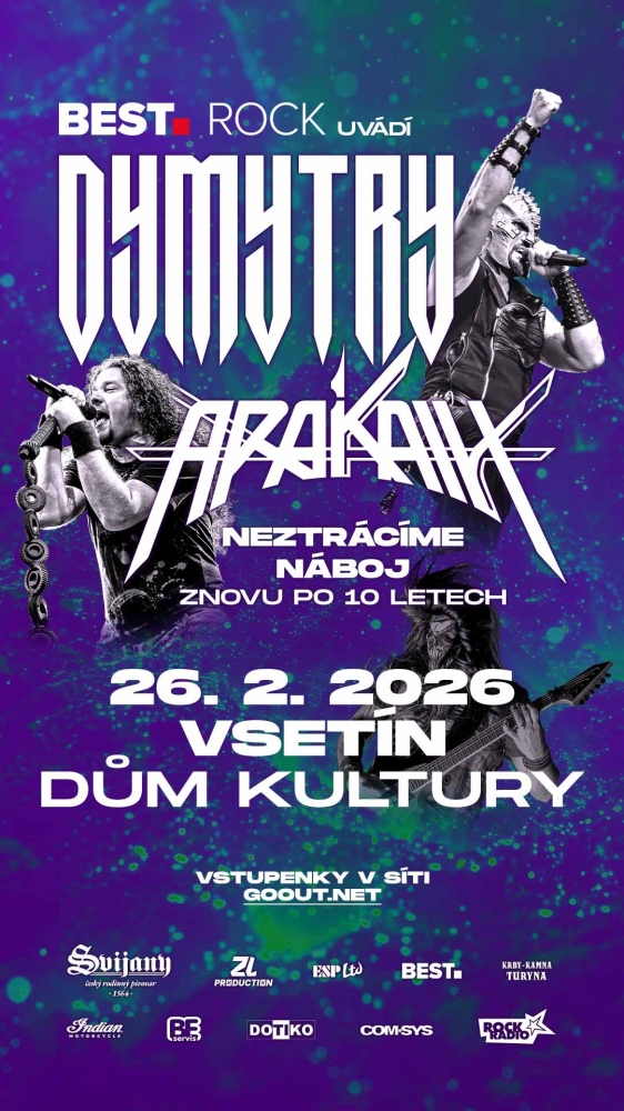 Fanoušci tvrdé muziky se mohou těšit na pořádnou rockovou nálož. Kapely Dymytry a Arakain dorazí 26. února 2026 do Domu kultury Vsetín, kde nabídnou energickou show plnou známých hitů i nezaměnitelné koncertní atmosféry. Po deseti letech se tak do Vsetína vrací koncert, který slibuje večer nabitý adrenalinem a poctivým českým metalem.