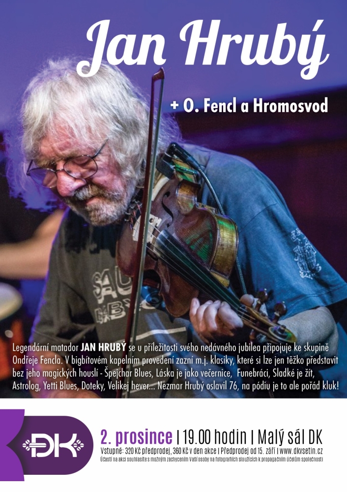 Legendární houslista Jan Hrubý vystoupí 2. prosince od 19 hodin v malém sále Domu kultury Vsetín spolu se .....
